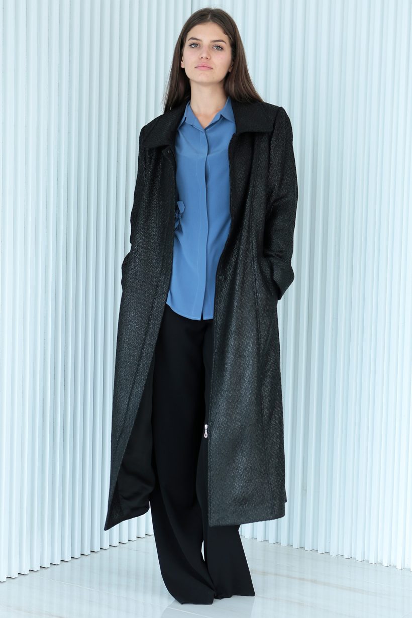 Deri Görünümlü Pardesü – Siyah