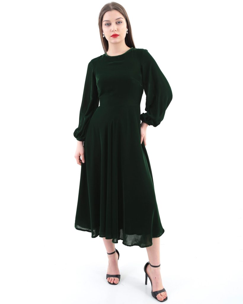 İpeksi Kadife Zümrüt Elbise